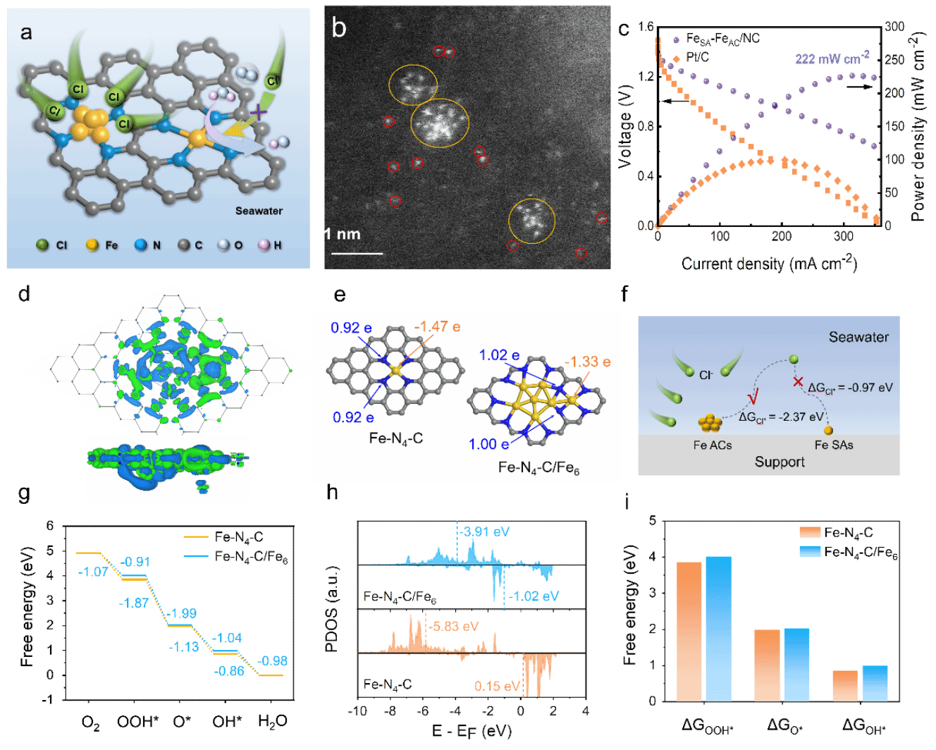 近期,海洋科学与工程学院饶鹏副研究员所在团队在能源领域Top期刊Advanced Functional Materials (IF=19.0)发表题为《Protection of Fe single-atoms by Fe clusters for chlorine-resistant oxygen reduction reaction》的研究论文。海洋科学与工程学院饶鹏副研究员为论文第一作者,海洋科学与工程学院博士后梁颖、苗政培副教授、田新龙教授为论文共同通讯作者,best365英国在线体育官网海洋科学与工程学院是唯一通讯单位。