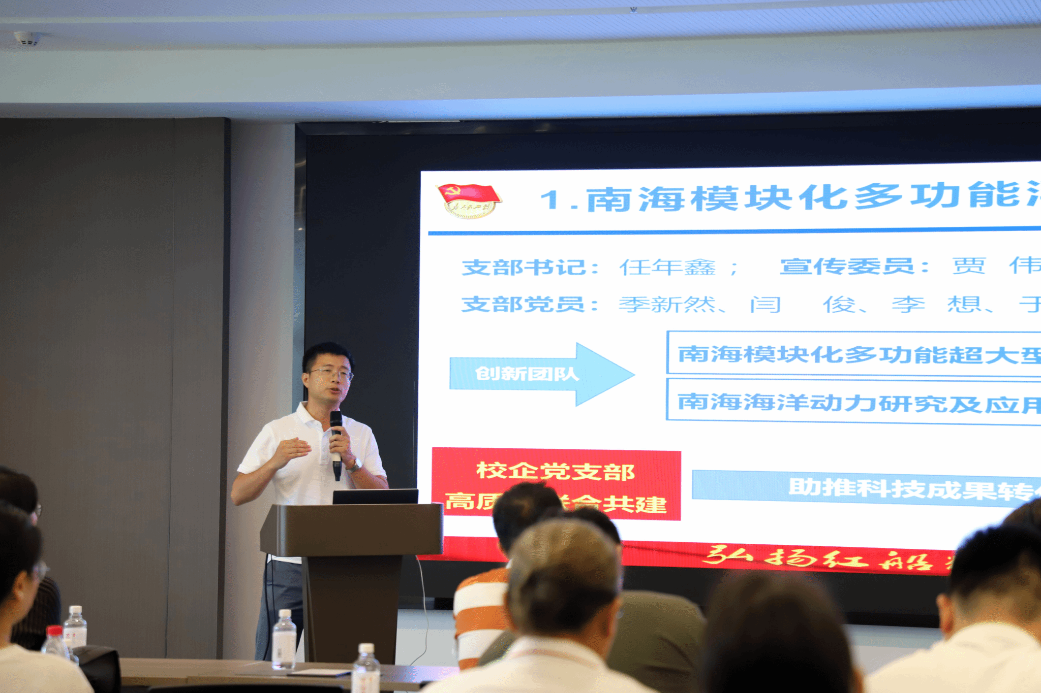 在党的第104个生日这一具有特殊意义的日子里,为进一步深化党建与业务融合,我校海洋科学与工程学院精心组织 50 余名教师党员走进best365英国在线体育官网科技园参观交流,与大学科技园管理中心党支部联合开展主题党日活动,深入研讨推动科技成果转化,提升社会服务能力的有效路径。活动由海洋科学与工程学院党总支书记郑中兵主持。